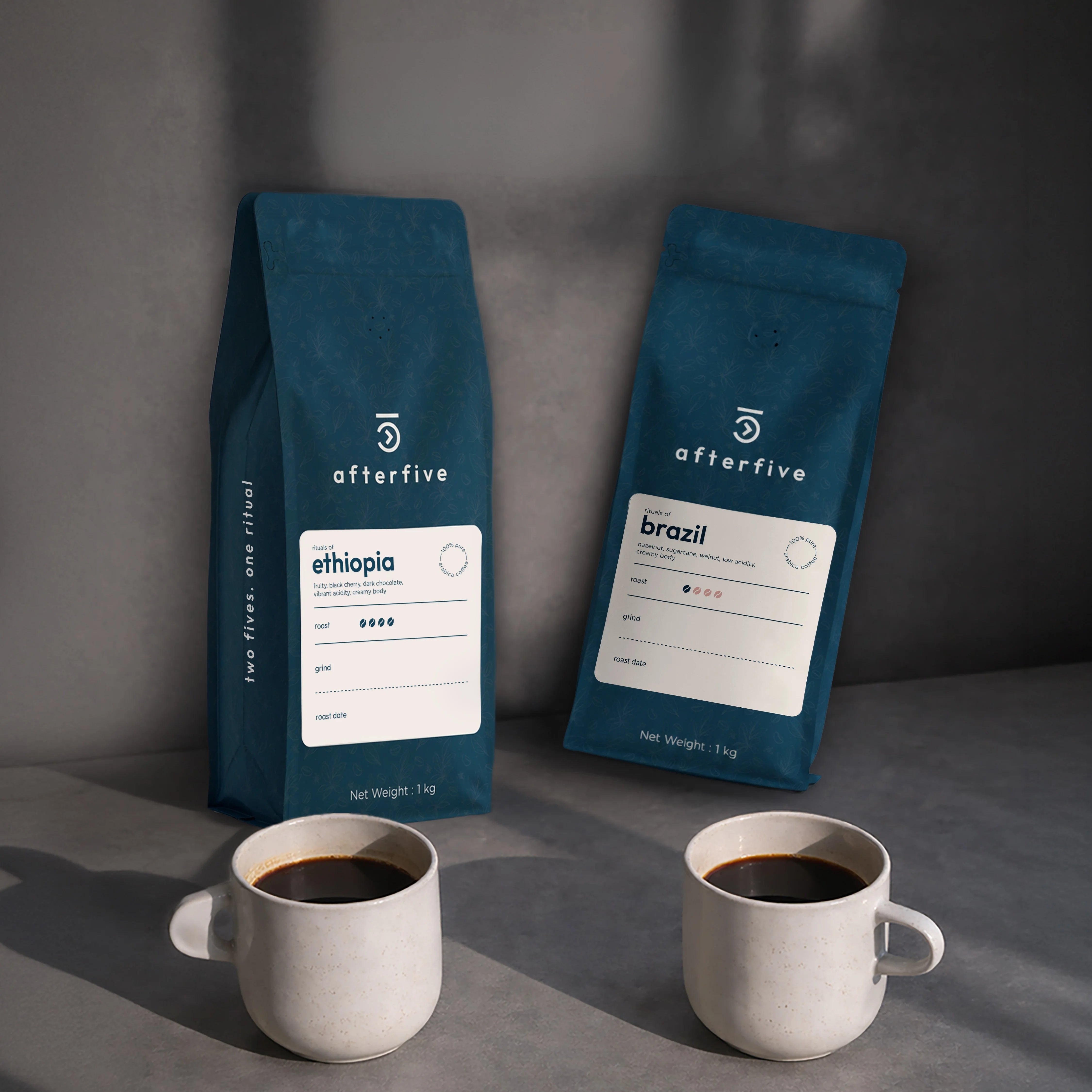 afterfive celebrates the moments that come after five—whether it’s the first light at 5 AM or the calm after 5 PM. Our beans and syrups are crafted to suit both ends of the day: bright, nuanced roasts to kickstart early routines, and richer blends or syrups to soothe evening rituals. Each product invites you to embrace the ritual that follows the hour of five, whenever it arrives.